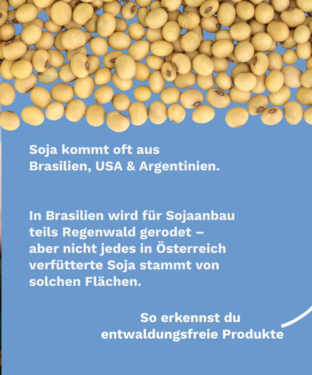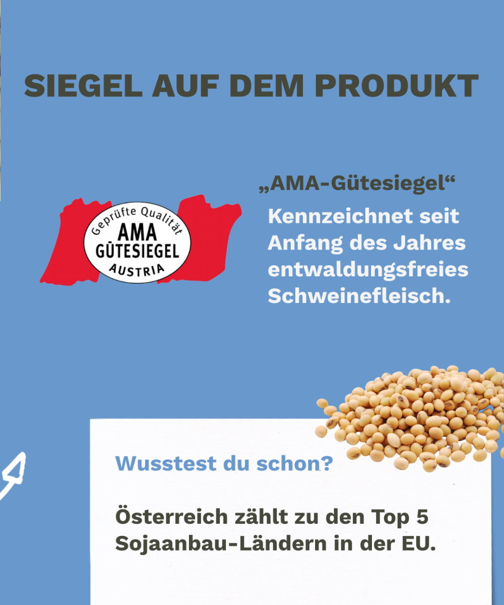 Aber auch für regional produzierten, österreichischen Soja gibt es positive Entwicklungen: Österreich ist mittlerweile das fünftgrößte Sojaproduktionsland in der EU. Seit Beginn 2025 wird für Schweine im Rahmen des AMA-Gütesiegels nur noch Futter verwendet, das garantiert ohne Entwaldung erzeugt wurde. Auch die europäische, gemeinnützige Organisation DonauSoja setzt sich für einen nachhaltigen und gentechnikfreien Anbau von Soja in Europa ein.