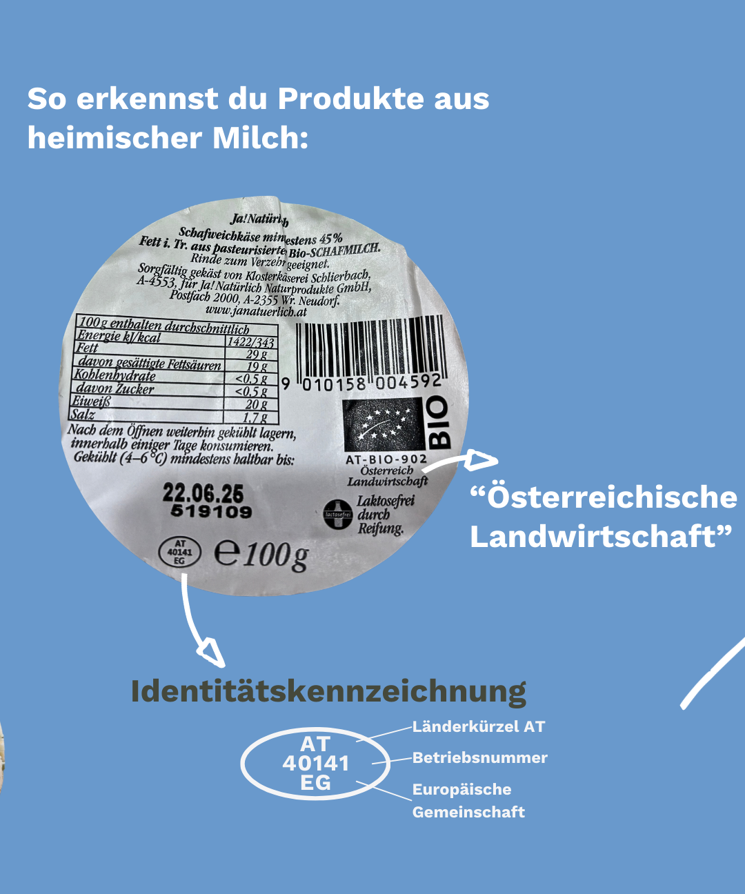 4. Freiwillige Angabe: Der Schafweichkäse trägt oft die freiwillige Angabe „Österreichische Landwirtschaft“, die dem Verbraucher zusätzlich versichert, dass das Produkt aus heimischer Produktion stammt.