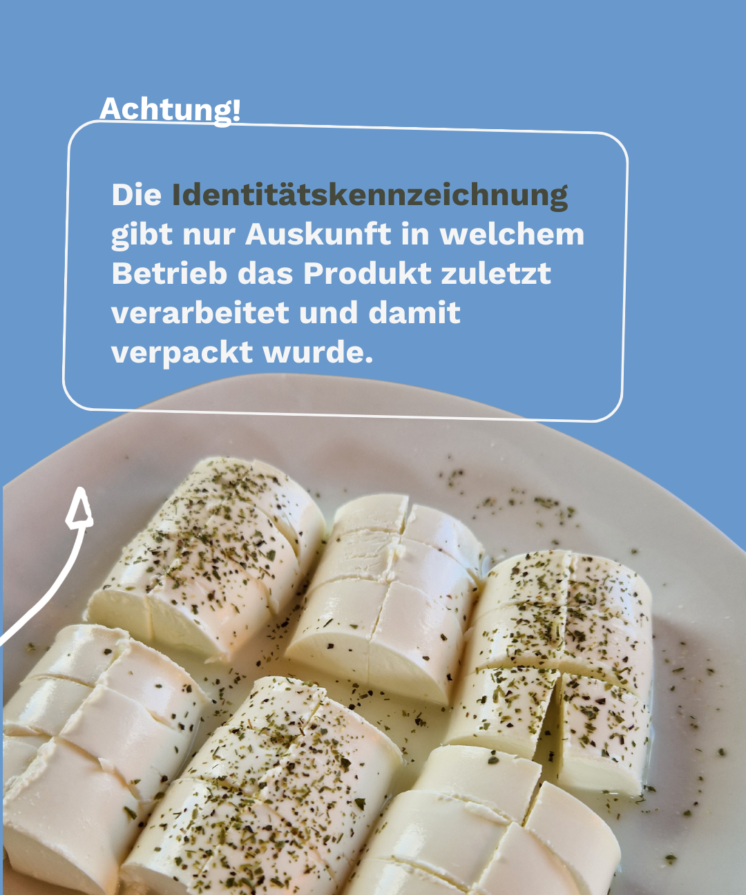 1. Identitätskennzeichnung: Gibt an, in welchem Betrieb das Produkt zuletzt verarbeitet, also verpackt wurde!
