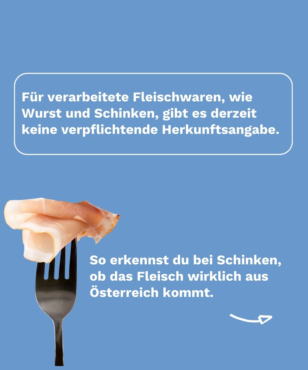 4. Freiwillige Angabe: Der Schinken trägt oft die freiwillige Angabe „Fleisch aus Österreich“, die dem Verbraucher zusätzlich versichert, dass das Produkt aus heimischer Produktion stammt.