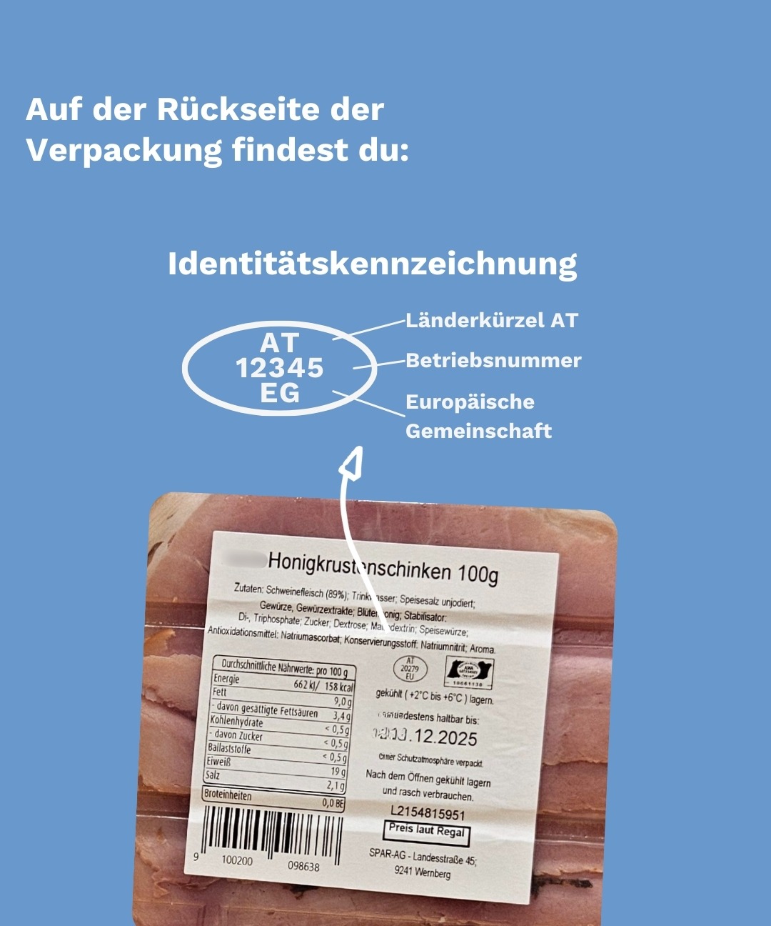 - Länderkürzel: Der Schinken trägt das Kürzel AT für Österreich.