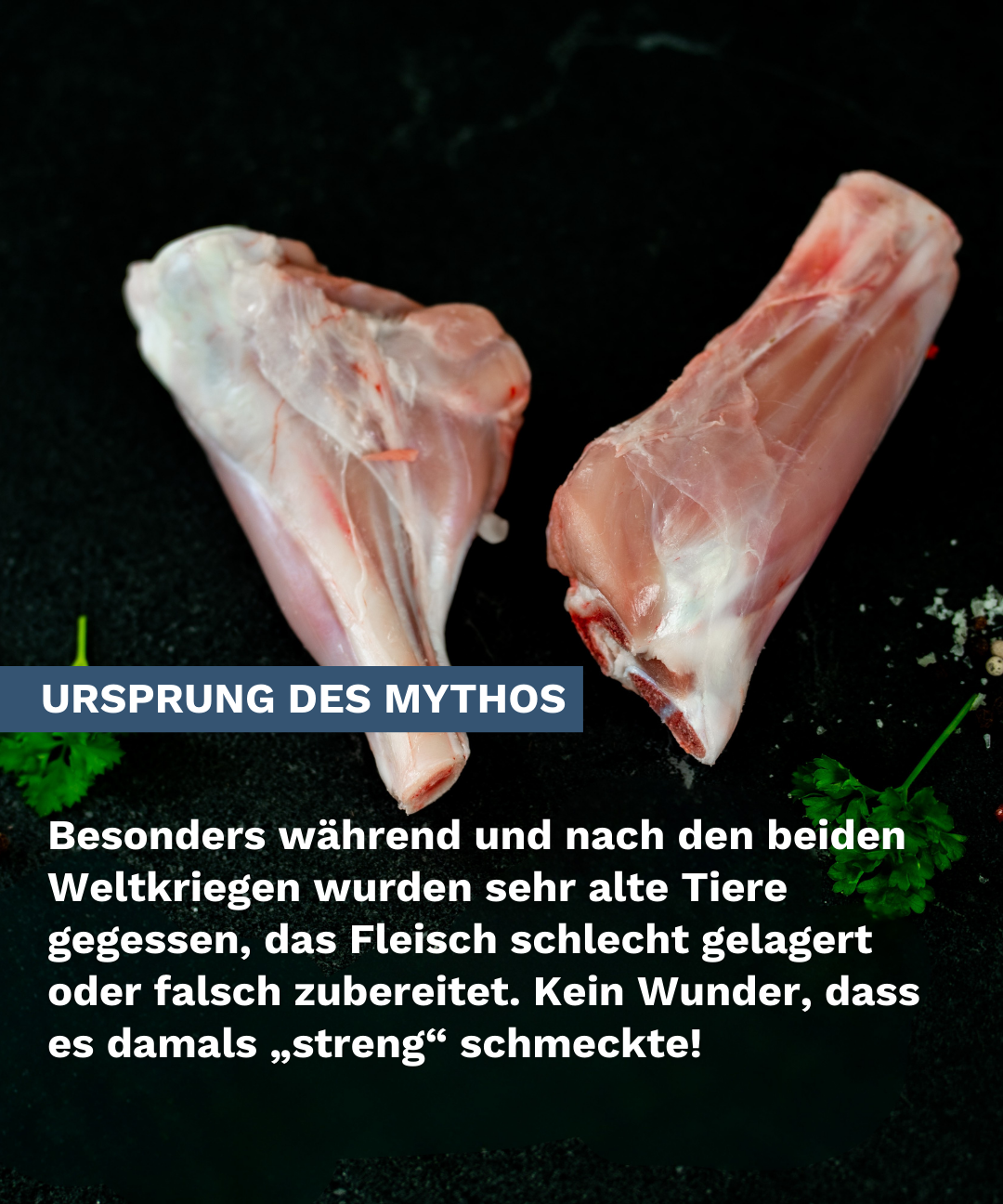 Früher wurden besonders in der Vor- und Nachkriegszeit oft ältere Tiere oder unkastrierte Böcke gegessen. Manchmal wurden sie außerdem schlecht gelagert oder nicht passend zubereitet. Deshalb konnte das Fleisch damals streng schmecken. Dieses Bild hat sich bei vielen Menschen bis heute gehalten.
