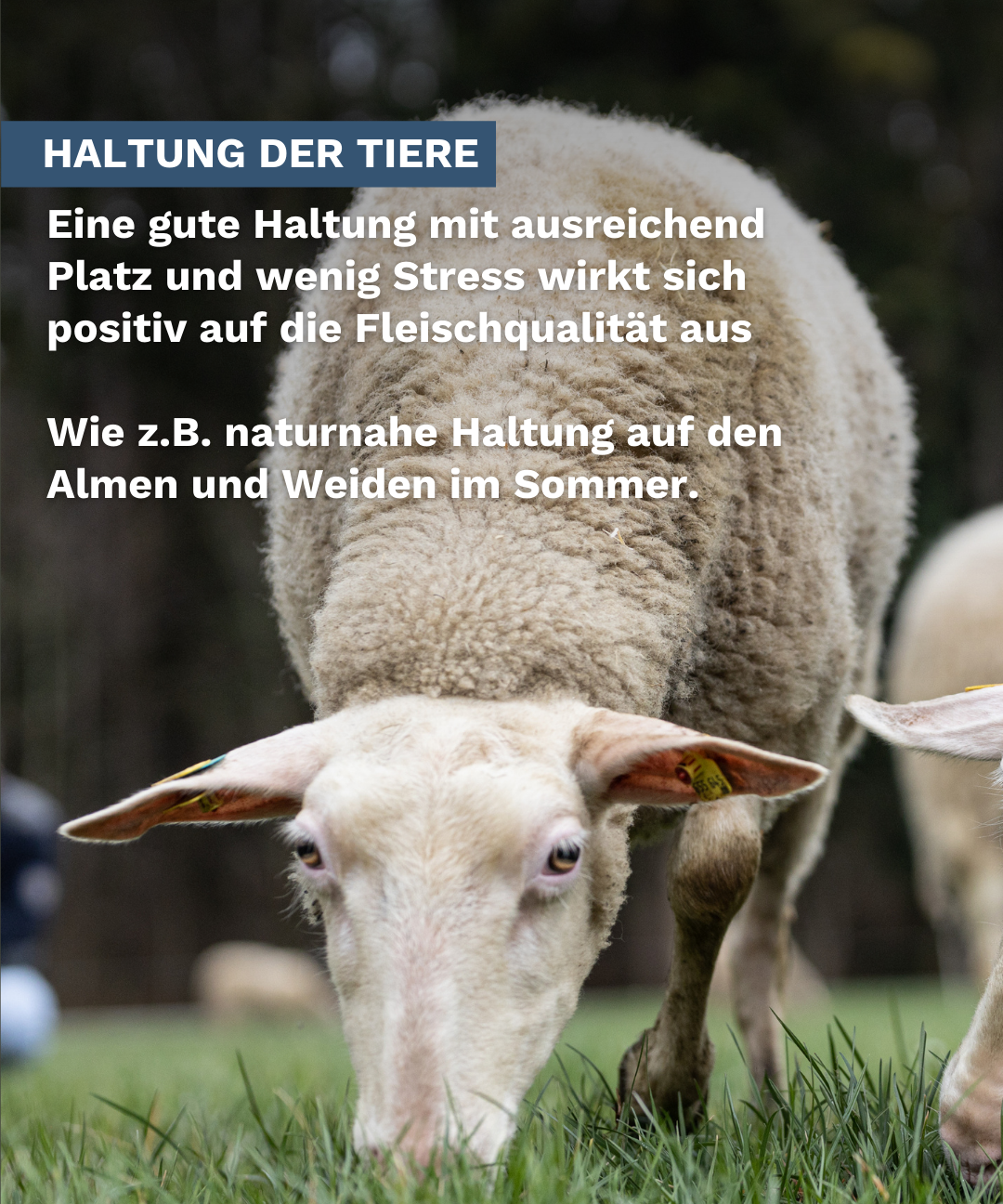 Eine gute Haltung ist eine wichtige Grundlage für gute Fleischqualität. Schafe brauchen ausreichend Platz, Bewegung und möglichst wenig Stress. Denn Stress wirkt sich direkt auf die Qualität des Fleisches aus. Tiere, die ruhig aufwachsen, liefern Fleisch mit besserem Geschmack und einer günstigeren Fleischstruktur.