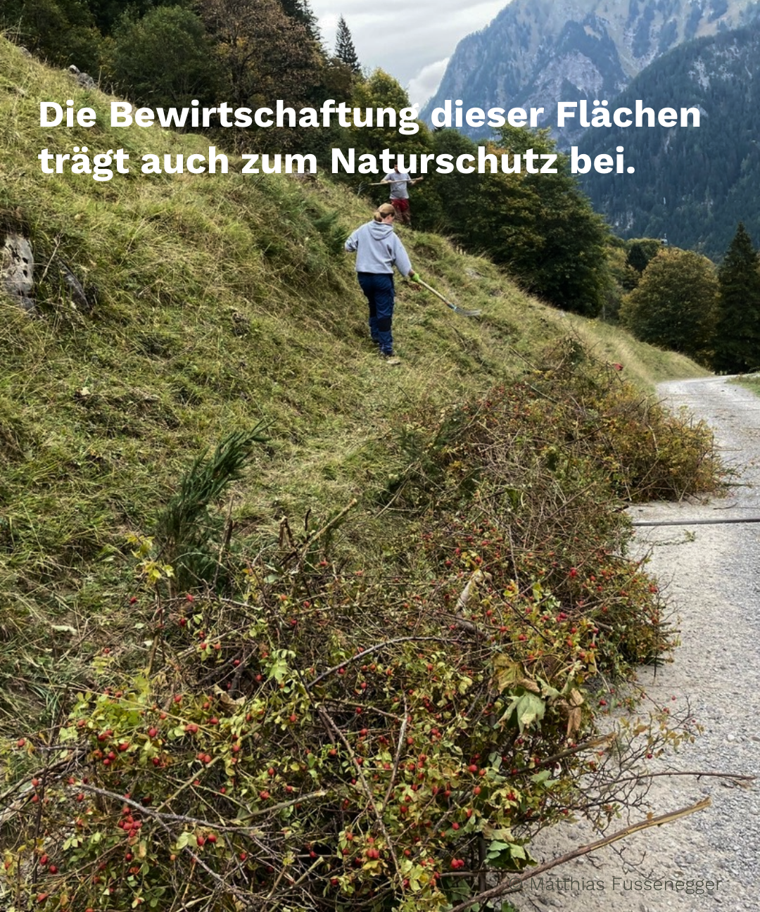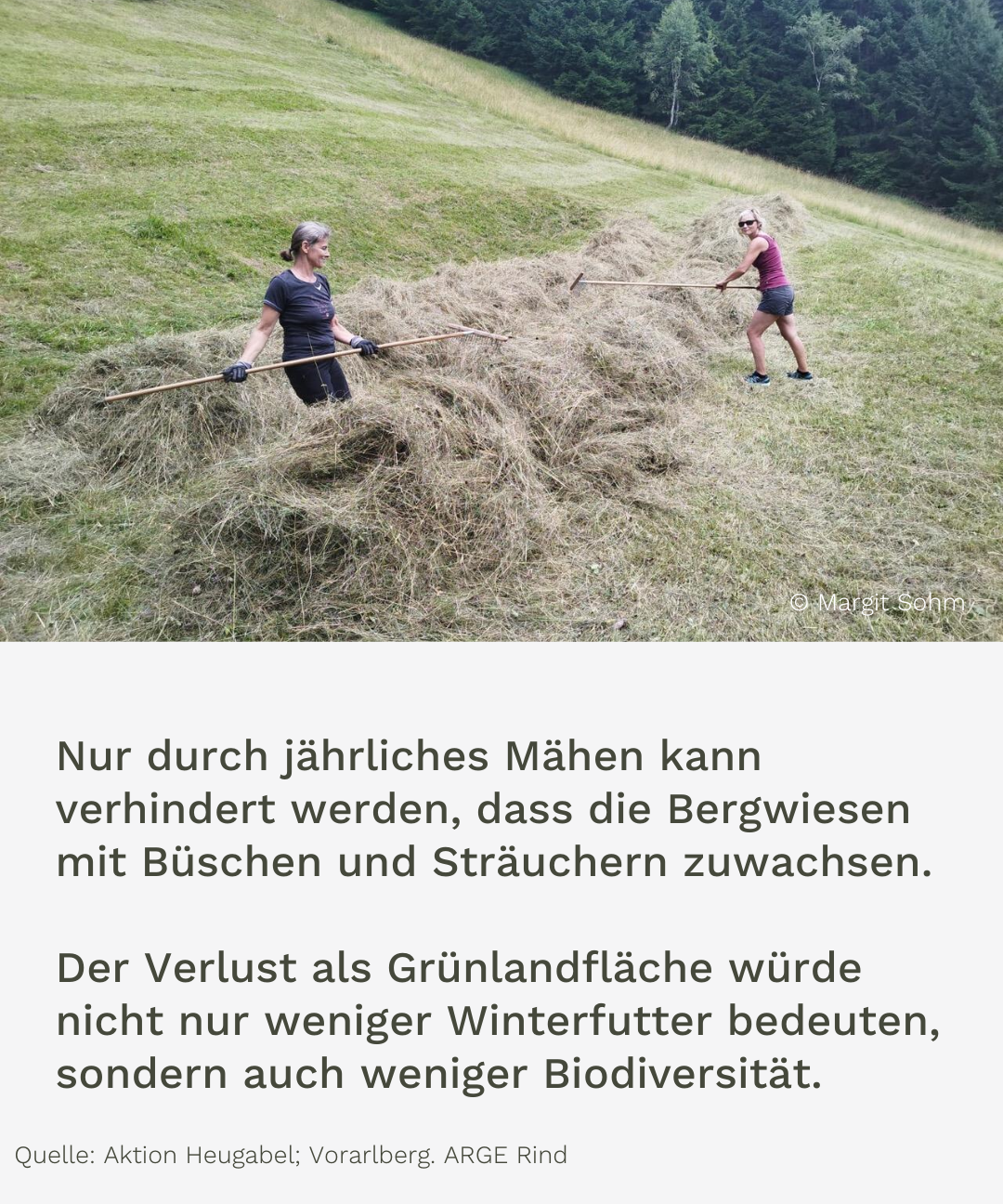 Besonders im Westen von Österreich, wo eine Bewirtschaftung mit Traktoren nur erschwert möglich ist, ist die Heuernte mit der Hand von großer Bedeutung. Oft stellt dieses Magerheu die Futtergrundlage des Jungviehs im Winter dar.