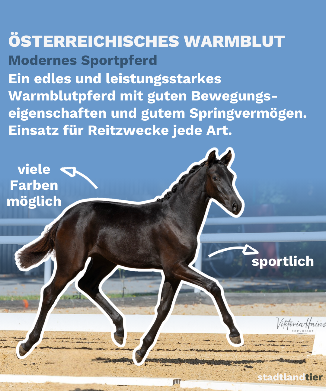 „Das Österreichische Warmblut ist ein vielseitiges Reitpferd mit historischer Zucht in Stadl-Paura, das Tradition, Leistungsfähigkeit und modernen Reitsport vereint.