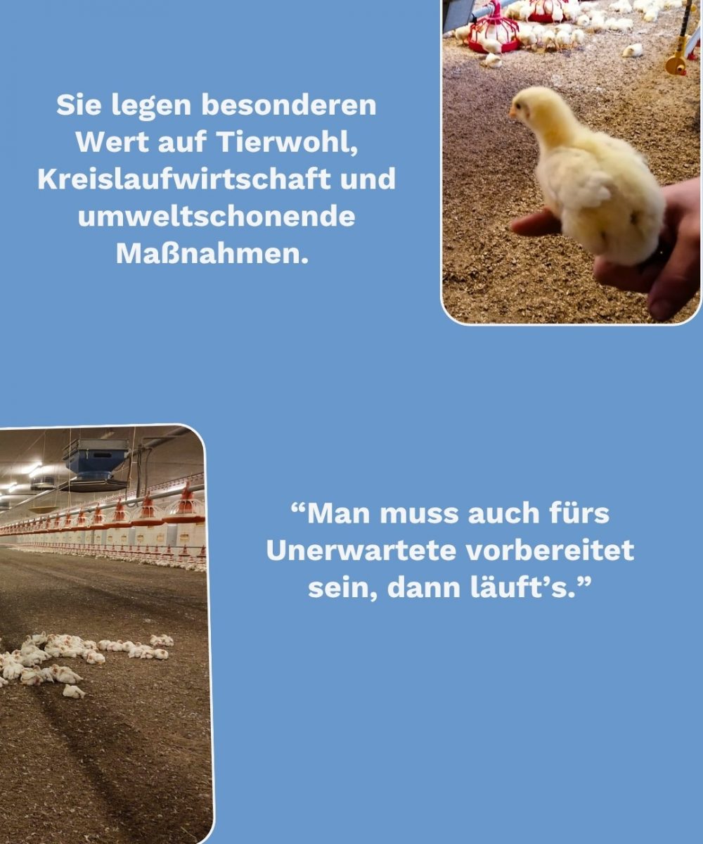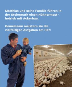 Matthias führt einen vielseitigen Familienbetrieb mit rund 65.000 Masthühnern, einer Biogasanlage, Ackerbau und Forstwirtschaft.