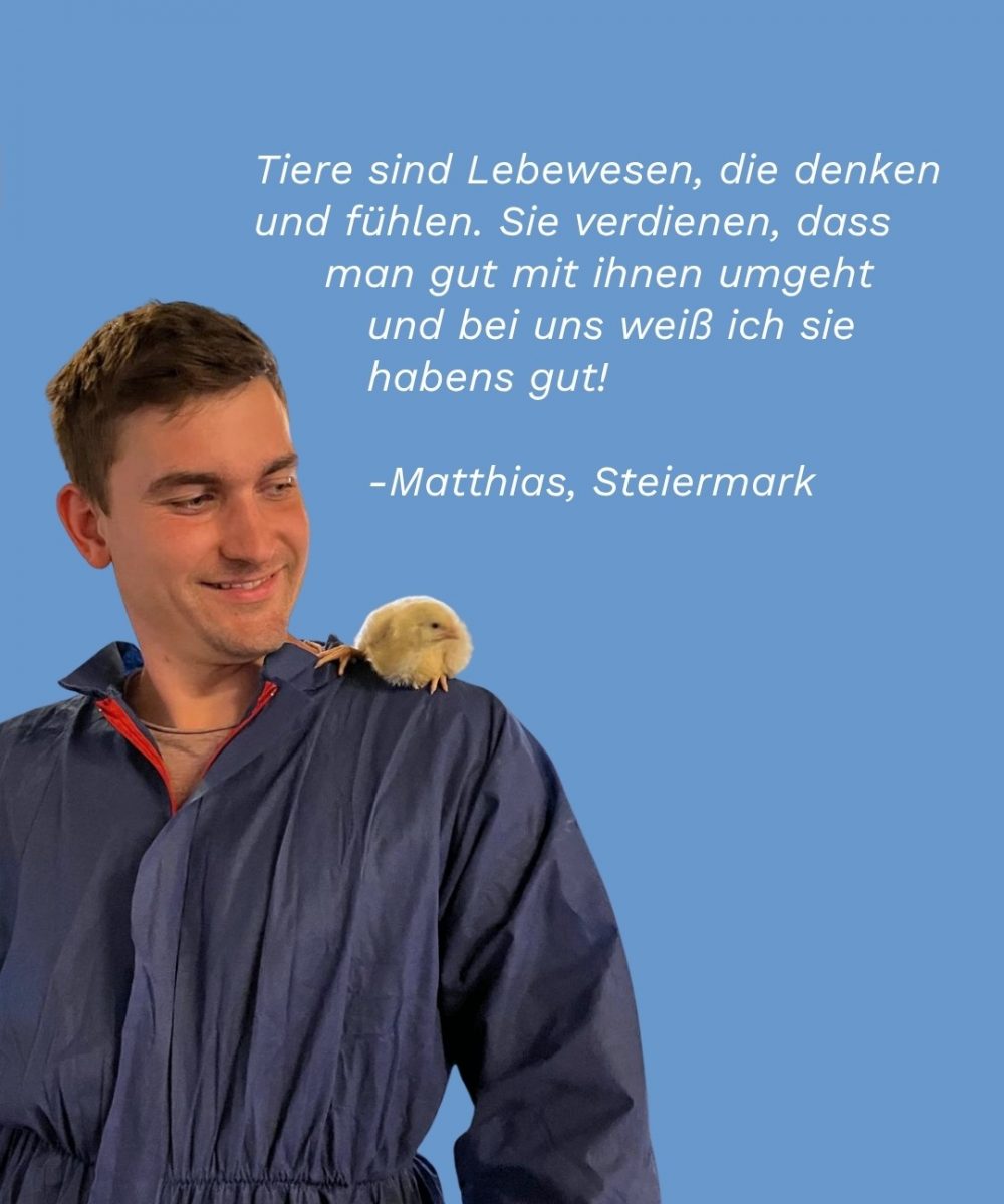„Entscheide dich für österreichisches Geflügelfleisch! In Österreich sind die Haltungsbedingungen wesentlich besser als im Ausland. Auch der Einsatz von Antibiotika ist hierzulande deutlich geringer als in anderen EU-Ländern.“