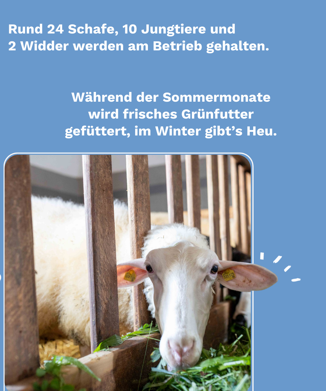 • In der Winterzeit kommen die Lämmer zur Welt – die Fütterung der Schafe erfolgt während dieser Zeit mit Heu.