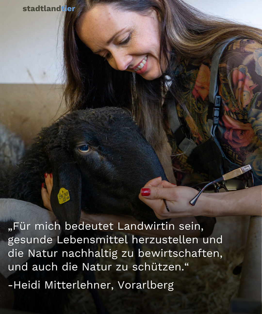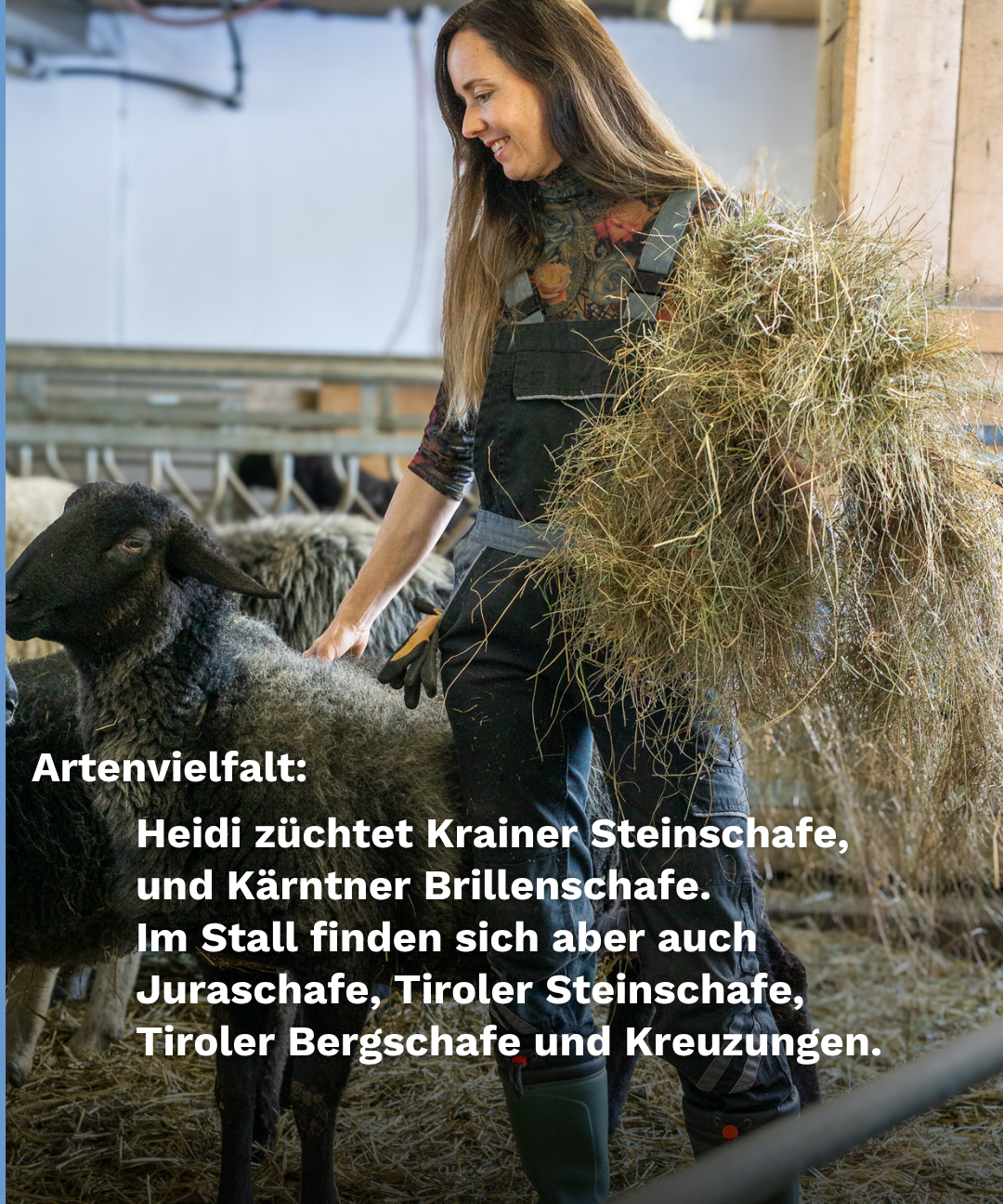 Besonders wichtig ist Heidi das Wohl ihrer Tiere und ein reibungsloser Ablauf am Hof. Sie legt großen Wert auf einen respektvollen Umgang mit der Natur, nachhaltige Bewirtschaftung und die Herstellung gesunder Lebensmittel. Die enge Verbindung zu ihren Tieren und ihr Vertrauen geben ihr dabei viel zurück.