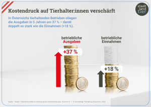 Die finanzielle Belastung ist im Vergleich dazu jedoch überdurchschnittlich angestiegen. Im selben Fünfjahres-Zeitraum und über alle Tiersparten hinweg hat sich die Kostenbelastung mit durchschnittlich 36,6% mehr als verdoppelt. Dies setzt die Betriebe enorm unter Druck.