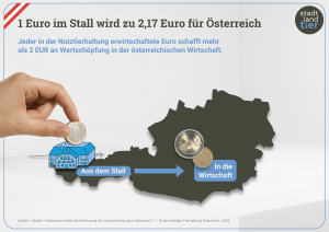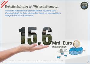 Die Betriebe der Nutztierhaltung generieren mit ihren wirtschaftlichen Kernaktivitäten (inkl. „Urlaub am Bauernhof“) österreichweit Produktion, Wertschöpfung, Beschäftigung und Steuerleistungen. Sie tragen entscheidend zum gesellschaftlichen Wohlstand bei.